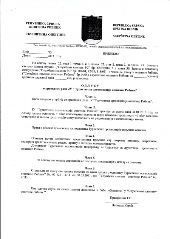 rada JU TO opštine Ribnik, razlog za donošenje ove odluke je taj što se potrebe
