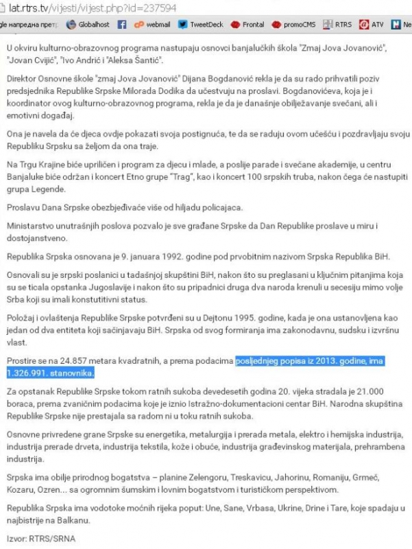 Pored činjenice da je Republički zavod za statistiku RS nedavno objavio zvanične rezultate popisa za Republiku Srpsku, RTRS i SRNA su u svojim izvještajima koristili podatke Agencije za statistiku BiH.