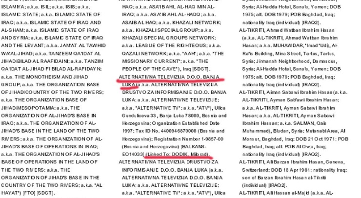 ATV je stavljena na listu u skladu sa Izvršnom uredbom 14033 jer je u vlasništvu ili pod kontrolom Dodika, ili ista djeluje ili se čini da djeluje za ili u ime Dodika, direktno ili indirektno.