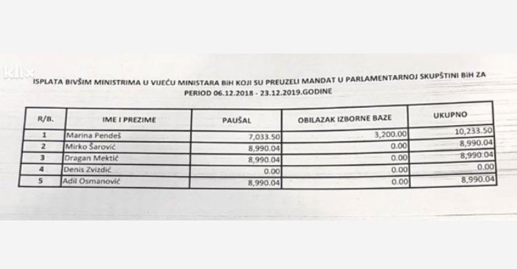 Dakle, u isto vrijeme dok su primali enormno visoke plate iz džepova građana BiH na račune ovih pet bivših ministara ukupno je isplaćeno i 37.203 KM dodatnih naknada.