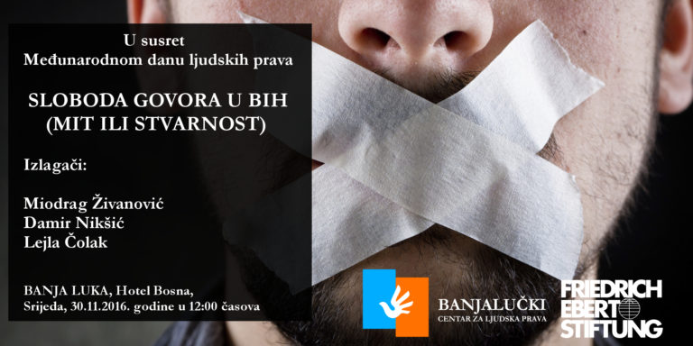 Na ovom događaju, koji će se održati 30.11.2016. godine (srijeda) u hotelu „Bosna“ u Banjaluci sa početkom od 12:00 časova, raspravljaće se o praktičnom konceptu slobode govora u BiH, regulisanju slobode govora i njenom (ne)postojanju.
