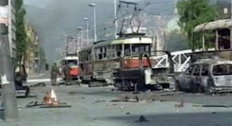 Dolaskom kolone u Dobrovoljačku ulicu u blizini Miljacke otvorena je vatra na kolonu.