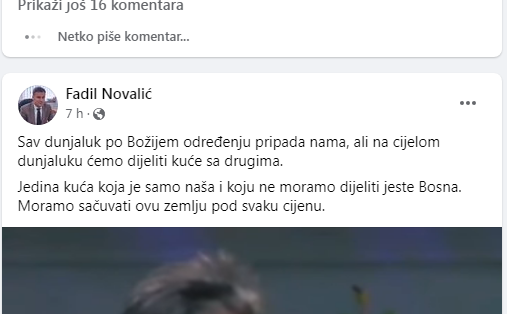 Jedina kuća koja je samo naša i koju ne moramo dijeliti jeste Bosna. Moramo sačuvati ovu zemlju pod svaku cijenu."