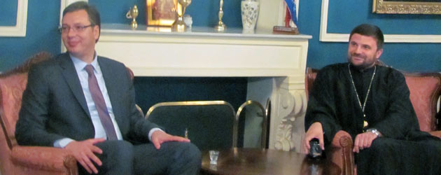 Vučić je juče prilikom posjete Sabornom hramu u Sarajevu dao novčani prilog za njegovu obnovu, a starješina crkve protojerej Borislav Livopoljac je u ime Mitropolije uručio premijeru Srbije ikonu Presvete Bogorodice Čajničke, sliku ulje na platnu Sabornog hrama i fototipsko izdanje sarajevskog prepisa "Zakonopravila Svetog Save".