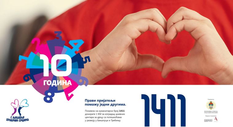 Средства, која ће бити прикупљена на 10. хуманитарној акцији "С љубављу храбрим срцима", биће намијењена за изградњу дневних центара за дјецу са потешкоћама у развоју у Бањалуци и Требињу.