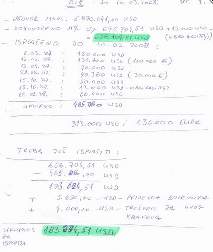 Treba dodati da su u emisiji emitovanoj na hrvatskim lokalnim TV stanicama objavljeni i dokumenti vezani za predstavnika Ukrspecexporta Ivicu Josipovića, a riječ je o troškovnicima ispisanim olovkom na kojima se nalazio i spisak isplata visokim dužnosnicima Ministarstva obrane BiH.