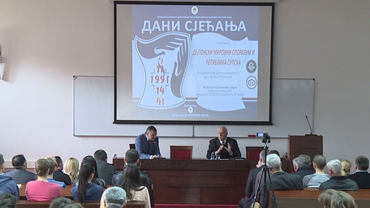 U okviru "Dana sjećanja" u 11.00 časova će na Pravnom fakultetu biti održano predavanje "Iskustva u radu Haškog tribunala". O ovoj temi govoriće advokat Branko Lukić i asistent na Pravnom fakultetu Olivera Ševo.
