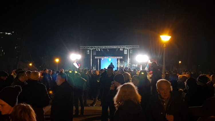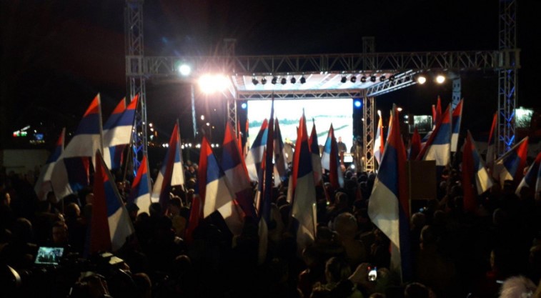 "Ovo je prvi put u istoriji da smo na istom mjestu građani Republike Srpske na dva skupa", rekao je okupljenima Draško Stanivuković.