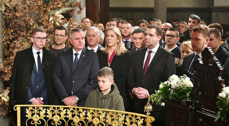 Епископ бањалучки данас је служио Свету архијерејску литургију поводом Светог архиђакона Стефана, а потом је са званичницима Републике Српске преломио славски колач.