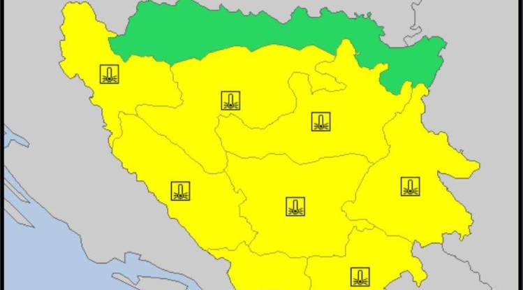 Žuti meteoalarm upaljen je za regije Bihaća, Banjaluke, Tuzle, Višegrada, Livna, Sarajeva, Mostara, Foče i Trebinja. Ovo upozorenje ne odnosi se za područje regije Prijedora, odnosno samog sjevera BiH.