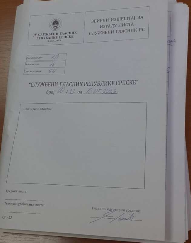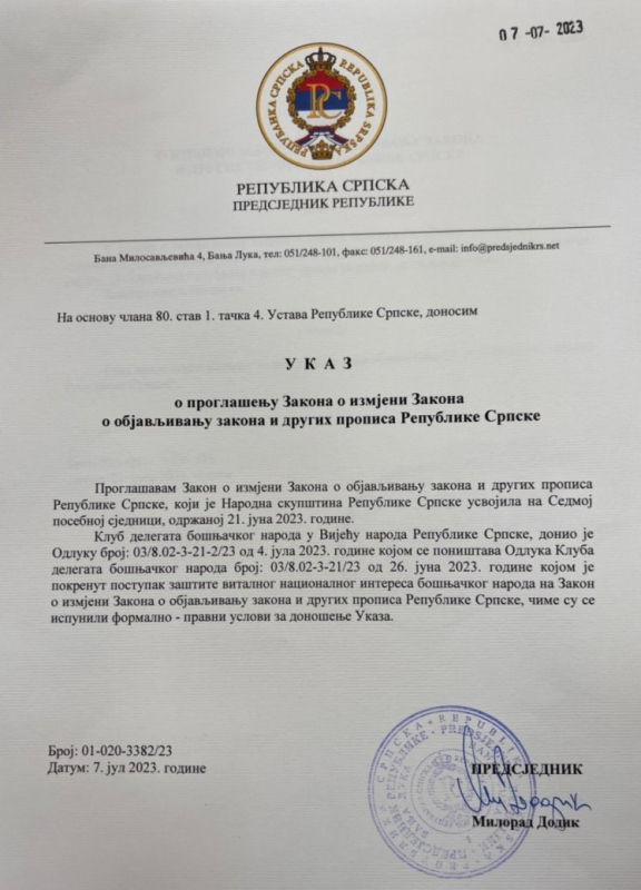 Ukaz predsjednika Republike Srpske objavljen u Službenom glasniku (FOTO)