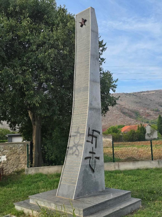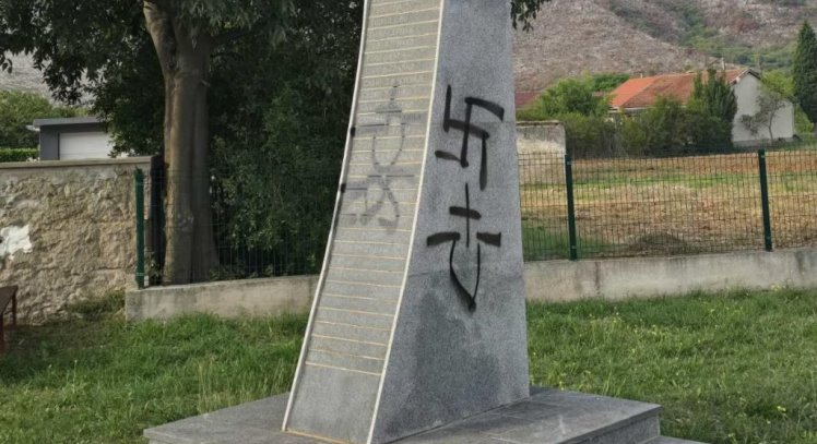 Ustaški simboli na spomeniku u Baćevićima kod Mostara - Foto: SRNA