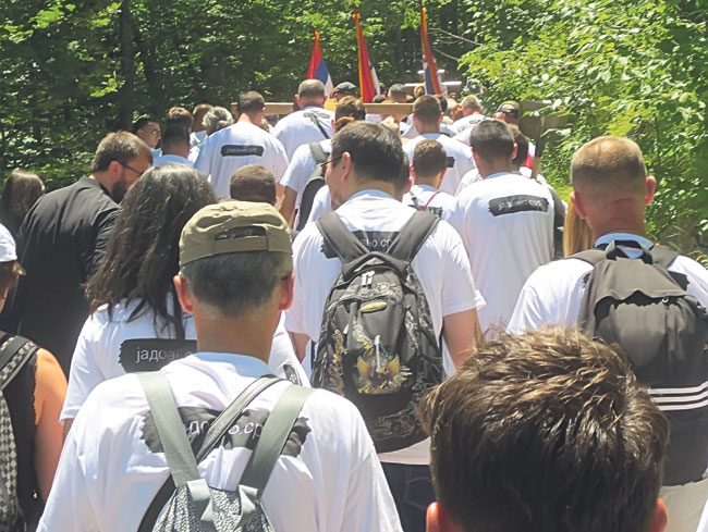 Iz Brušana krećemo planinskim putem ka Katinoj jami. Onom istom stazom kojom su pre sedamdeset pet godina na pogubljenje vođeni vladika Sava i njegov narod. Na čelu kolone je jerusalimski krst, a iza njega onaj namenjen obeležavanju Katine jame, osveštan u Molu. Tri metra je visok. Od pune hrastovine. Mnogo kilograma težak. I dok ga nosite oko vas je mnogo mladih i ne toliko mladih koji su nestrpljivi da krst preuzmu, da ga oni ponesu, makar samo par stotina metara. I počinjete da razumete značenje reči čast. I zbog čega je krst koji nosite časni i zbog čega je neizmerna čast nositi ga ovom surovom stazom.