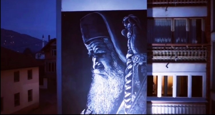 Veličanstveni mural mitropolita Amfilohija u Foči (VIDEO)