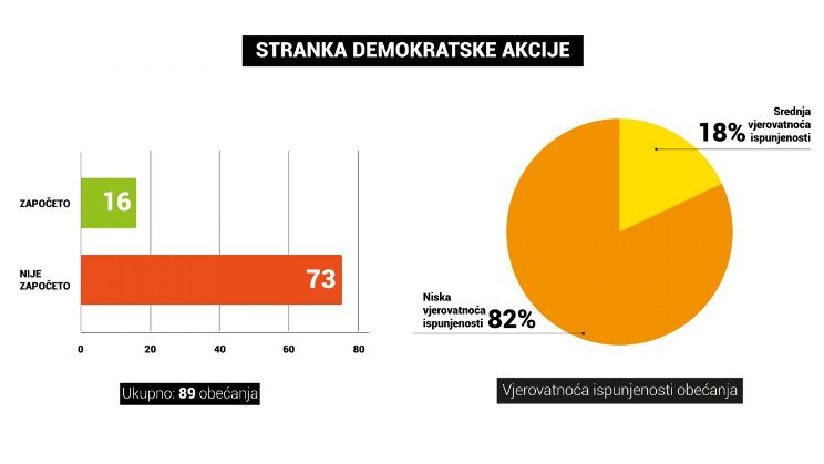 realizaciju 28 obećanja, dok je najmanje obećanja iz izbornih programa partija
