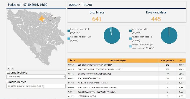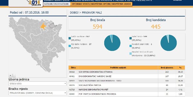 Tako je u mjesnoj zajednici Doboj Čivčije na izbore izašlo čak 96.35 odsto upisanih u birački spisak, od čega je skoro 70 odsto ljudi glasalo za Srpsku demokratsku stranku. U mjesnoj zajednici Doboj Trnjani izlaznost je bila 95.63 odsto, dok je na biračkom mjestu u Prnjavor Mali 95.45 odsto.