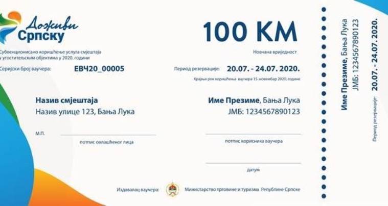 Naime, predloženom izmjenom građanin Republike Srpske može koristiti jedan turistički vaučer vrijednosti do 100 KM pod uslovom da ostvari najmanje dva noćenja zaredom u jednom ugostititeljskom objektu za smještaj, za razliku od dosadašnjeg rješenja koje je podrazumjevalo uslov od najmanje tri noćenja zaredom – saopšteno je nakon sjednice Vlade RS.