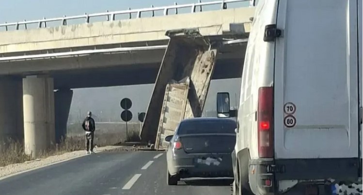 Vozio kamion s podignutom kipom, udario u nadvožnjak autoputa “9. januar” (VIDEO)