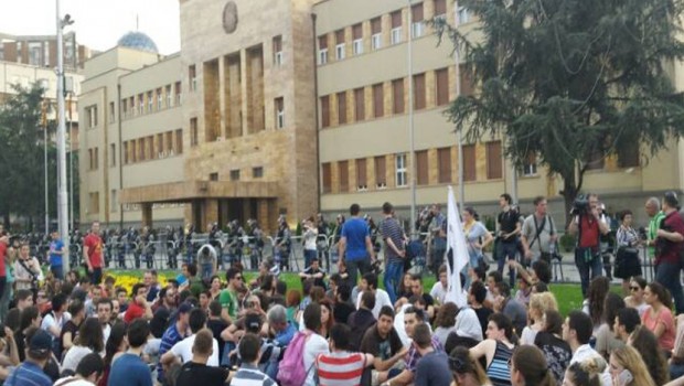 Kako se navodi, oni su jajima gađali kancelariju Ivanova, nakon čega su otišli ispred sčedišta vladajuće partije VMRO-DPMNE i ispred zgrade Vlade.