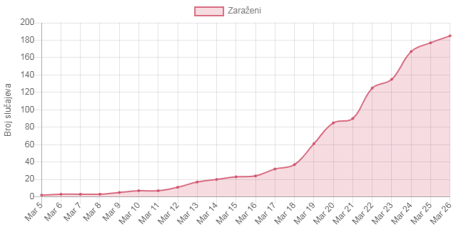 185 (+8) Slučajeva 2 Oporavljenih 3 Umrlih
