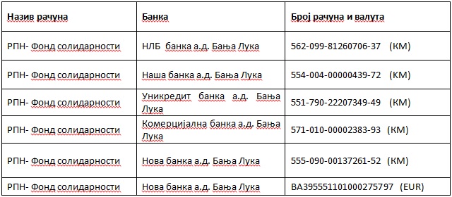 Републички штаб за ванредне ситуације донио је Закључак о уплати новчаних средстава на рачун посебних намјена – Фонд солидарности.