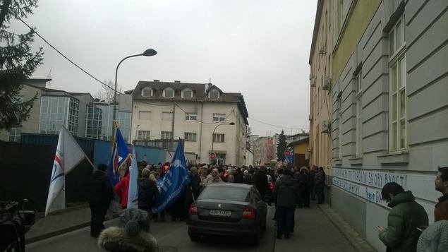 Predstavnici četiri granska sindikata budžetskih korisnika uputili su se Srpskom ulicom, do Gradske uprave, da bi stigli do Narodne skupštine Republike Srpske gdje su na miran način izrazili svoje negodovanje
