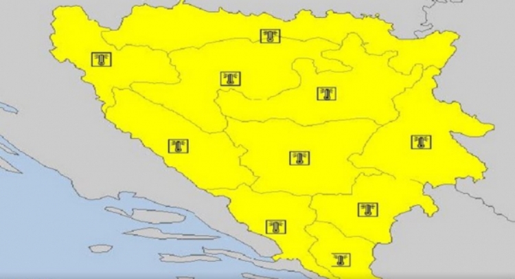 Grmljavina se očekuje u Foči, Bijeljini, Bihaću, Banjaluci, Livnu i Sarajevu, dok se u ostalim krajevima očekuju ekstremno visoke temperature.