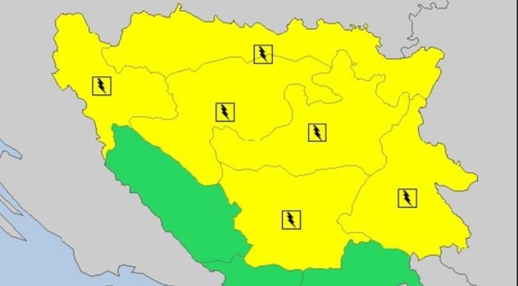 Prema informacijama iz Zavoda, nakon sunčanog jutra očekuje se da grmljavinsko nevrijeme tokom dana zahvati pomenute dijelove BiH.